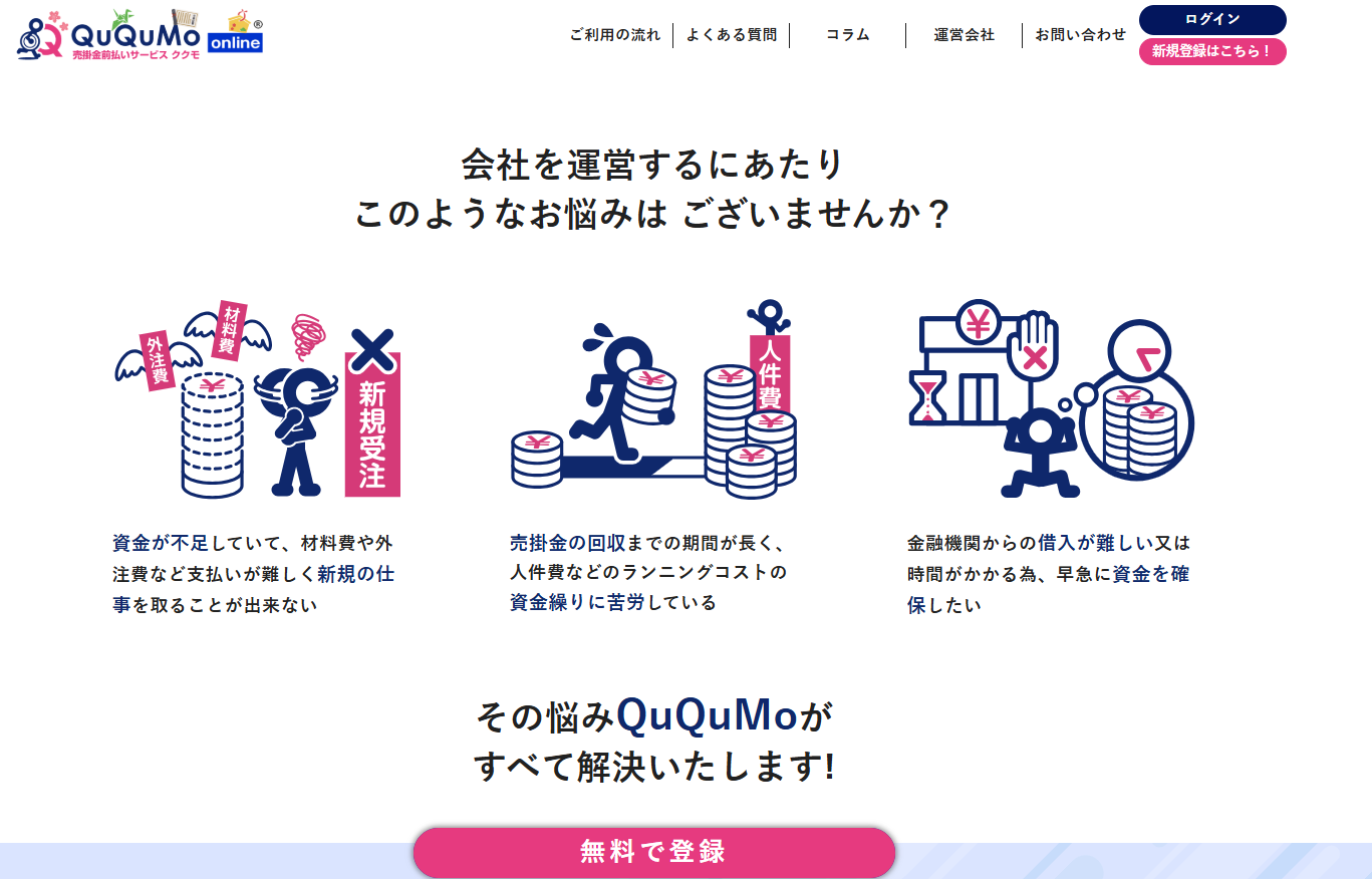 個人事業主は法人と比べて信用力が低いと判断されることが多く、銀行融資を受けるのが難しい場合があります。また、事業の規模が小さいため、売掛金が少額になるケースも見られます。このような場合でも、即日ファクタリングは大きな助けとなります。QUQUMOのように個人事業主やフリーランスに特化したサービスを提供している業者を利用すれば、1件の小口取引でも柔軟に対応してもらうことができます。これにより、資金繰りの課題を解消し、自由な事業運営を実現することが可能です。